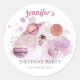 Outer Space Pink Girl Rocket Planets Galaxy Classic Round Sticker