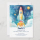 Celebrate the remarkable journey of your little one's first trip around the sun with our enchanting Outer Space-themed birthday invitation. This watercolor artwork features a delightful rocket ship, perfect for a space-themed birthday party for your little boy. Set the tone for a cosmic celebration and make the first birthday a memorable and joyous occasion. Elevate the excitement with this unique and charming space invitation! Generative content.