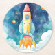 Celebrate the remarkable journey of your little one's first trip around the sun with our enchanting Outer Space-themed birthday invitation. This watercolor artwork features a delightful rocket ship, perfect for a space-themed birthday party for your little boy. Set the tone for a cosmic celebration and make the first birthday a memorable and joyous occasion. Elevate the excitement with this unique and charming space invitation! Generative content.