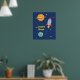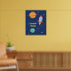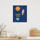 To outer space and beyond! Decorate and transform a little boy's room into a space adventure with this colourful poster that comes with a cute rocket ship blasting off from Earth into outer space to venture to other planets, stars and the unknown over a dark blue sky background. Personalise with child's name. He will be the coolest space kid around!