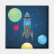 Dark night outer space sky with colourful and bright planets and white stars, with a silver rocket ship flying through the sky. Great for a little boys room for the guy who loves space and travel. All Designs Copyright © 2012 www.CuteComfy.com