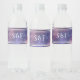 Elegant water bottle labels featuring customisable monogram against a galaxy background.