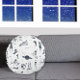 Navy Blue Space Boy's Room Outer Space Solar System Astronaut Spaceship Round Accent Pillow. Boy's Room Decor with Saturn, The Big Dipper, and Little Dipper, Space Shuttle, Earth, Satellites, Shooting Stars, Space Stations, and more in a muted deep blue-grey pattern.