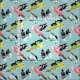 OUTFLIERS Cute Parakeet Print Aqua Fabric