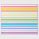 Abstract digital art of lighter coloured broader spectrum rainbow stripes including pink, red, gold, orange, ecru, yellow, lime green, green, pastel blue, turquoise, blue grey, indigo, lavender, and purple outlined by the thinner solid colour, against a white background.
