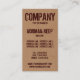 A business card template with a cardboard box texture with a distressed font. Giving a kind of home made rubber stamped effect. The cardboard box texture is repeated on the back.