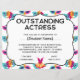 Celebrate exceptional student talent with the "End of Year Outstanding Actress Student Recognition Award." This elegant award is perfect for recognising a student's dedication and outstanding performance in drama and theatre. Made with high-quality materials, it serves as a lasting memento of their hard work and achievements. Ideal for school ceremonies and drama clubs, this award inspires continued excellence in the performing arts.