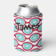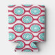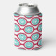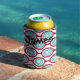 This can cooler has a mid-century modern design of beet-coloured ovals connected into chains with turquoise concentric circles made of circle rings inside. Same design, different colours? Message me.