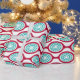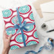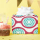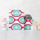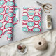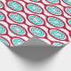 This wrapping paper has a mid-century modern design of beet-coloured ovals connected into chains with turquoise concentric circles made of circle rings inside. Same design, different colours? Message me.