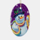 Oval shape purple Christmas tree decoration Snowman and tinsel. Purples.