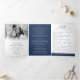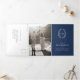 Oval monogram wedding RSVP blue white Tri-Fold Invitation