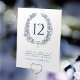 Elegant oval wreath leaf in dark navy blue on white wedding table number card. Edit this card with your own names and wedding details and table number. You must change the number to each table number that you need and add them to your cart, one at a time. Quantity discounts may apply once you add all the items to your cart. Other matching items are available. Designed by www.mylittleedenweddings.com