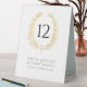 Elegant oval wreath leaf in gold effect on white with black text wedding table number. Edit this card with your own names and wedding details and table number. You must change the number to each table number that you need and add them to your cart, one at a time. Quantity discounts may apply once you add all the items to your cart. Other matching items are available. Designed by www.mylittleedenweddings.com
