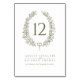 Elegant oval leave foliage wreath muted olive green on white wedding table number. Edit this card with your own names and wedding details and table number. You must change the number to each table number that you need and add them to your cart, one at a time. Quantity discounts may apply once you add all the items to your cart. Other matching items are available. Original line art hand drawn oval leaf wreath and design by Sarah Trett exclusively for www.mylittleedenweddings.com