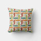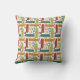 This throw pillow has a mid-century modern design of ovals and circles in orange, gold, teal, and turquoise on a field of white. Want the same design with different colours? Message me.