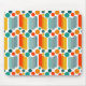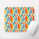 This mouse pad has a mid-century modern design of ovals and circles in orange, gold, teal, and turquoise on a field of white. Want the same design with different colours? Message me.