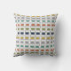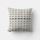 This throw pillow has a mid-century modern design of repeating rectangles and ovals in retro colors.
