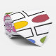 This necktie has a mid-century modern design of repeating rectangles and ovals in flower garden colours.