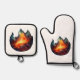 Oven Mitt & Pot Holder - Flames Artwork Oven Mitt & Pot Holder Set