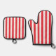 Oven Mitt & Pot Holders Red & White Stripe Holder Set