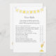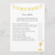 A fun game for the baby shower is the Over and Under game. This game features a yellow banner at top and a honey dipper. On the reverse is a boy teddy bear leaning on a honey barrel watching a honey bee with templates.