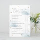 This cute "over or under?" bridal shower game card features a white background with faux gold stars and fluffy blue clouds. The reverse side features a baby blue background with faux gold star patterns. You can find matching products at my store.