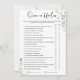 Beautiful design. Fun game for a Bridal Shower. Imagine my surprise when there was no “cheat” sheet. I contacted Zazzle for help but their ideas were to contact the developer. Haha there is no contact button. I ended up Googling the game and coming up with my own solution. Cute game but maybe downloading it via Etsy would have been a better idea. .