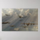 British Lancaster bombers over the English Channel on their way to a night bombing raid over Germany. Escorted by P-51D Mustangs