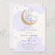 Baby Shower invitation featuring gold glittery moon and fun script "We are over the moon!" Personalise with your information or click "click to customise further" to adjust font type, size, colour.