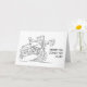 It is hard to find a motorcycle specific get well card for someone who has had an accident. This one works well with any brand of motorcycle. While I hope not to need them, I bought several to have on hand. Printing is appropriate style for this humorous get well card.