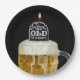Black tombstone in mug of beer on black for over the hill birthday party.
