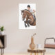 Original fine art design of a jumping horse and rider by equine artist Carolyn McFann of Two Purring Cats Studio on a quality art poster for horse lovers. Choose your poster size and price will adjust.