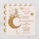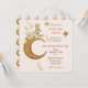 They are Over the Moon. A cute rabbit sitting on the moon announcing a baby girl's shower.