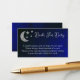 Over the moon baby shower with silver moon and stars against a black and blue night sky background