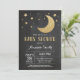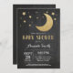 Over the Moon Baby Shower Invitation. Gold Glitter and chalkboard background. For further customisation, please click the "Customise it" button and use our design tool to modify this template.