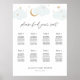 Welcome your shower guests with this seating chart featuring clouds and stars with a gold moon. Make room for more (or less) guests by clicking the "customise" button and decrease or increase the font size. Extra tables can also be deleted. In addition to the placement of each guest.