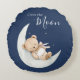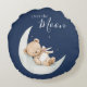 Over the moon theme baby shower baby pillow. Sweet hand drawn teddy bear sleeping on a moon. The bold blue colour sets the tone for a sweet gender neutral themed baby pillow.