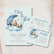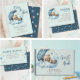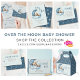 Over the moon teddy bear blue Baby Shower party supplies with blue moon, puffy clouds and stars.