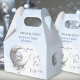 We are over the moon elegant celestial baby shower paper plates in blue and silver grey with a lovely moon and the baby face, diamonds and stardust. Boy baby shower tableware, easily personalise the text. - Kate Eden Art
