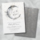 Over the Moon Baby Shower Invitation. Celebrate a magical moment with this whimsical boho celestial baby shower theme. "Over the Moon!" is prominently displayed within a crescent moon on an all-white background. If you choose to customise the background colour, it will have a gradient effect from the chosen colour down to white at the bottom. An elegant yet playful look with a watercolor midnight sky crescent moon and stars, gold stars, and white flowers, feathers, and other accents that give a bit of a bohemian vibe. The back features a dark starry night watercolor. The design showcases black, white, gold, and grey colouring overall. The text is presented in an elegant mix of black script typography and a serif font. This invitation is perfect for celebrating the mother-to-be and adds a mystical touch to your special day. While it's ideal for a baby boy, its design is versatile enough to be gender neutral. Simple Stylish Elegant Watercolor Over the Moon Baby Shower Invitation. Available as a printed invitation, or as a downloadable digital invite that you can send in e-mail or have printed locally!