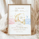 Celebrate your special reveal with this Over the Moon Gender Reveal Party Welcome Poster. Featuring a sweet crescent moon, smiling star, soft pink and blue clouds, golden stars, and a delicate baby bottle, this charming design sets a dreamy and elegant tone for your celebration. Perfect for greeting guests at your gender reveal, this customisable welcome sign adds a whimsical and heartfelt touch to your party decor.