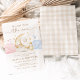 Celebrate the joy of your upcoming arrival with this enchanting "Over the Moon" gender reveal invitation! Featuring a charming crescent moon hugging a smiling star, surrounded by golden stars, dreamy pink and blue clouds, and a sweet baby bottle, this design combines whimsy and elegance perfectly. The warm, neutral tones and delicate script typography create a timeless celestial theme, ideal for your magical reveal. Easily customise with your event details and get ready to host an unforgettable "he or she" reveal under the stars!