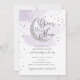 Over the Moon Silver Stars Purple Baby Shower Invitation