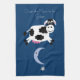Blue bespoke sobriety kitchen towel with a cute cartoon cow jumping over a crescent moon and star and the words Over the moon to be Sober. A fun and unique gift for anyone in recovery. The background colour can be changed and the text, font and colour of the text is also fully customisable. Please visit my Sober Princess store for unique & fun gifts for people in recovery from alcohol and drug addiction (& their dogs!) - and gifts with spiritual/inspirational messages. All illustrations created by an alcoholic in recovery.
