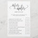 Have some fun at your shower with this fun game of "over-under" Add your own statements and personalised text using the template form or leave them as is. Use the "Customise Further" feature to change the background colour and script heading to match your party theme. Use the matte paper option for writing on.