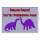 Two purple dinosaurs lament the stupidity of humans who never learn: "Dumb*** Humans! They're overbreeding again." Wear it to educate others on the danger of overpopulation.