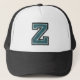 Z monogram trucker hat with burnt teal letter "Z" initial