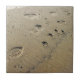 Overhead view on the wet sand at the beach with fo ceramic tile
