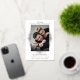 If the holiday season blessed your family with overjoy, choose this elegant card for announcing your joyful news, engagement, wedding, pregnancy, or the arrival of your new baby. The design features unique script and serif typography, and space for two photos (front and back). Also, on the back you can add a custom thank you, or holiday message.