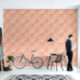 An overlapping design with a pastel peach colour and traditional Chinese fans.